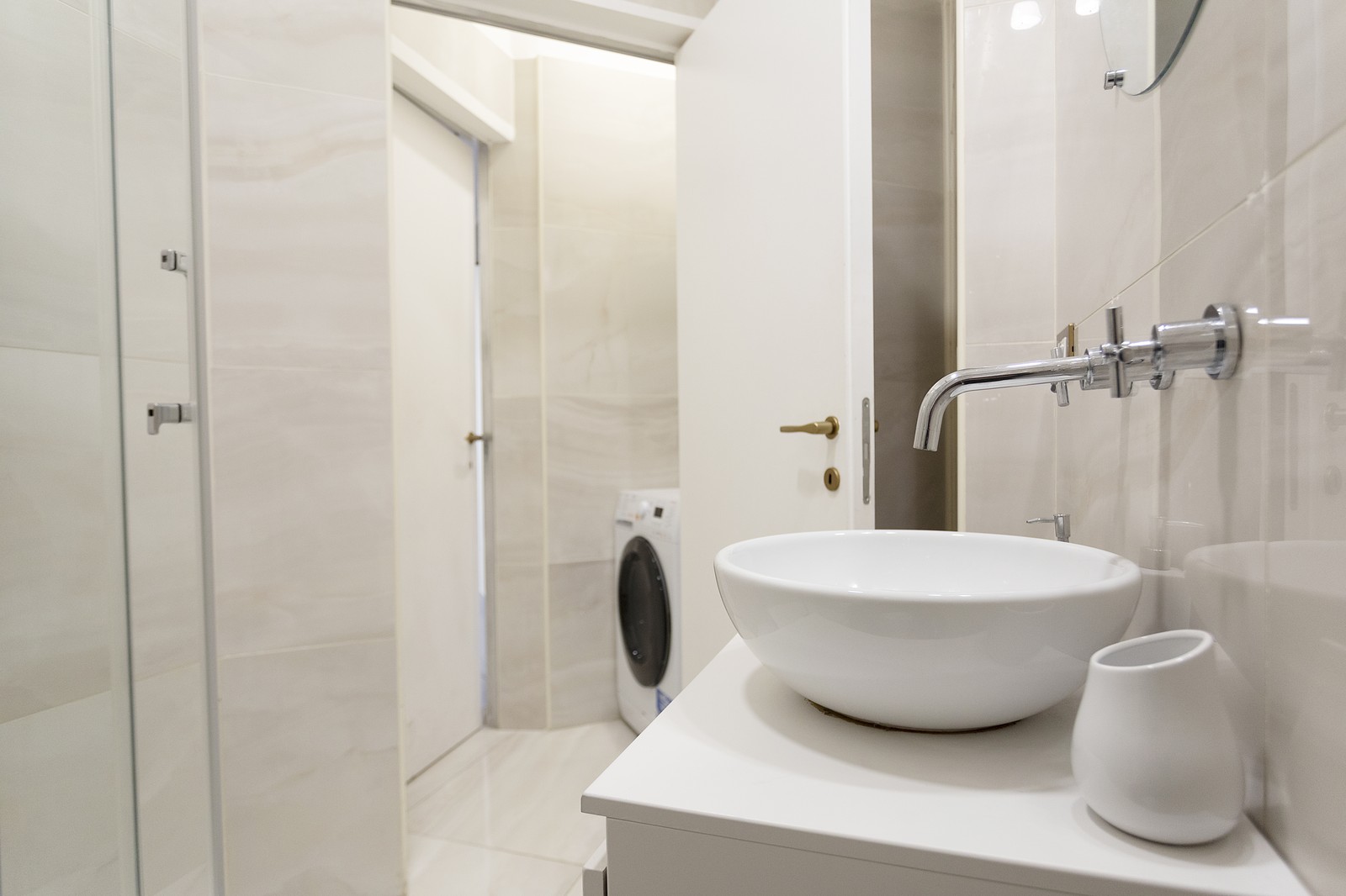 L'appartamento si trova all'interno di un elegante palazzo con portiere ed è completamente arredato.